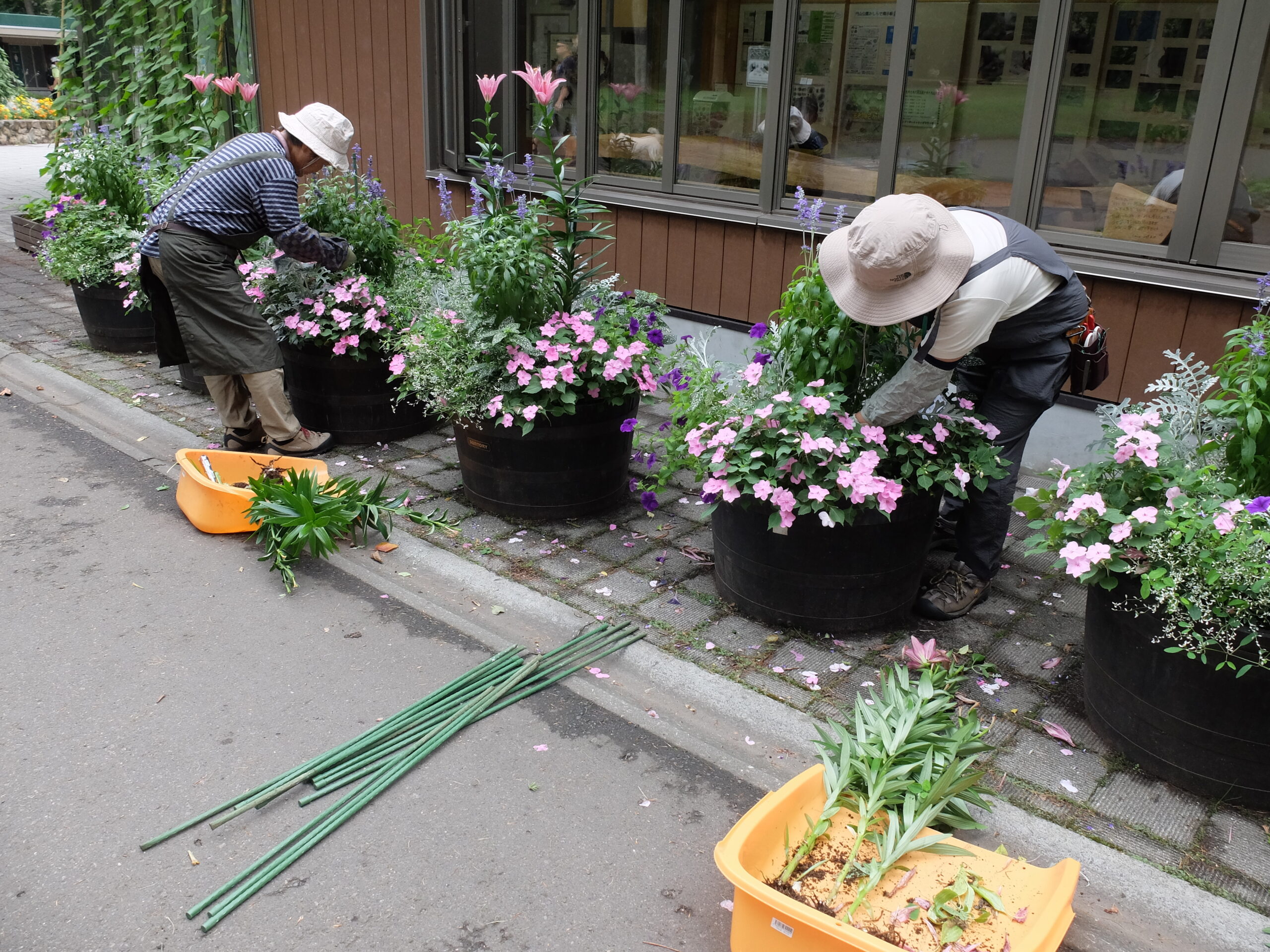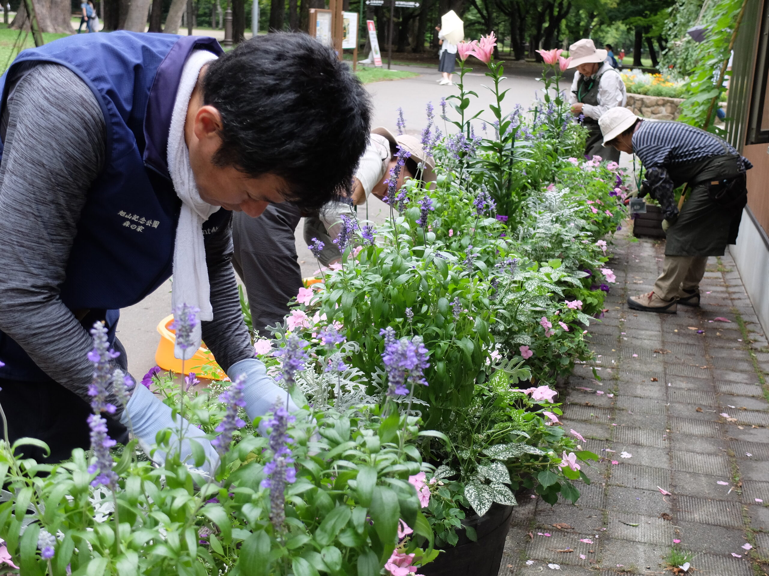 2024年8月14日水曜日、令和6年さっぽろまちづくりガーデニング講座の課外活動「コンテナガーデンメンテンス」の活動を円山公園で行いました。今回は受講者3名が参加し、講師は旭山記念公園の岡田主任が行いました。