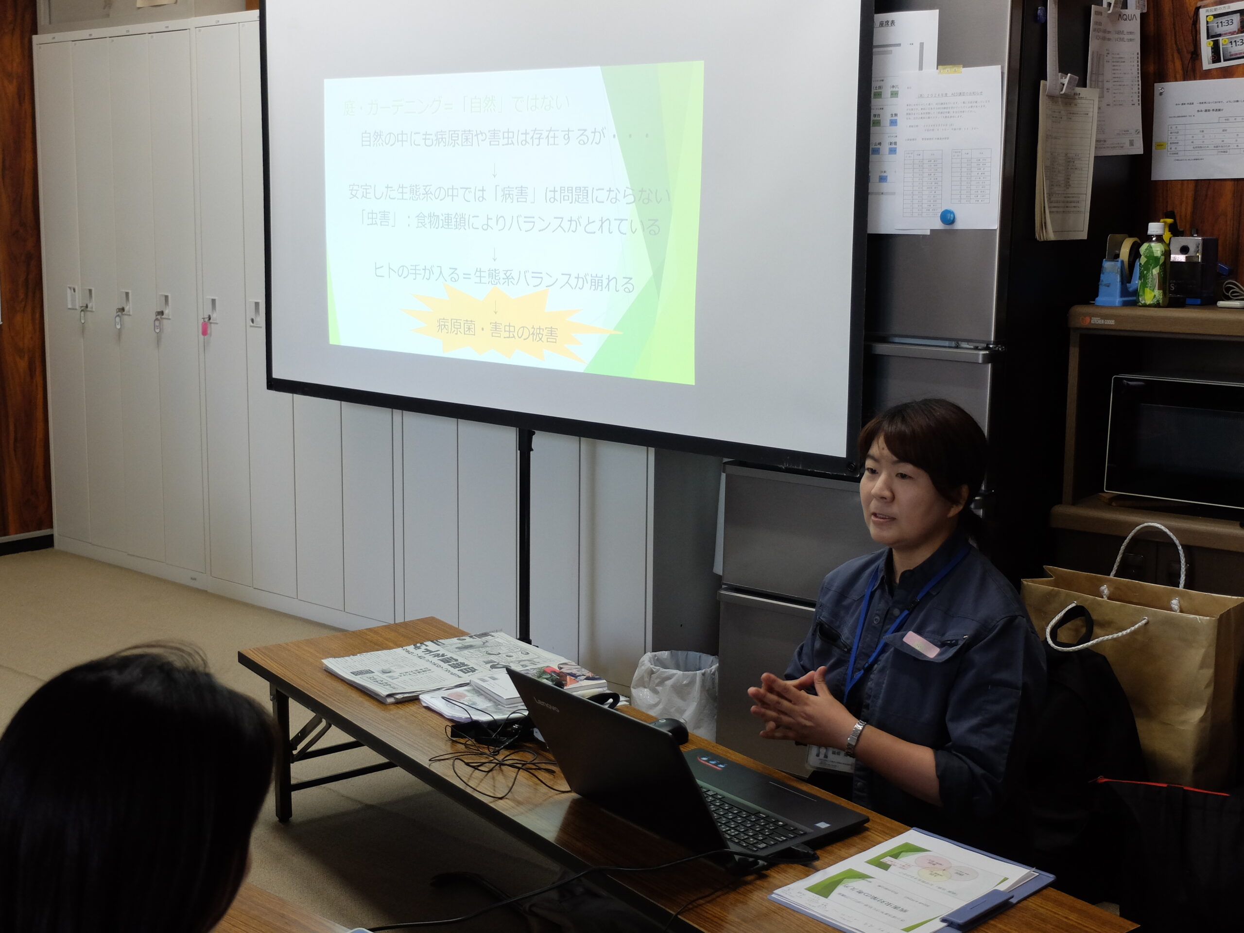 2024年8月24日土曜日、令和6年さっぽろまちづくりガーデニング講座の第12回目「病害虫対策の考え方」の講義を百合が原公園で行いました。講師は当協会職員で百合が原公園勤務の細樅聡子が担当しました。