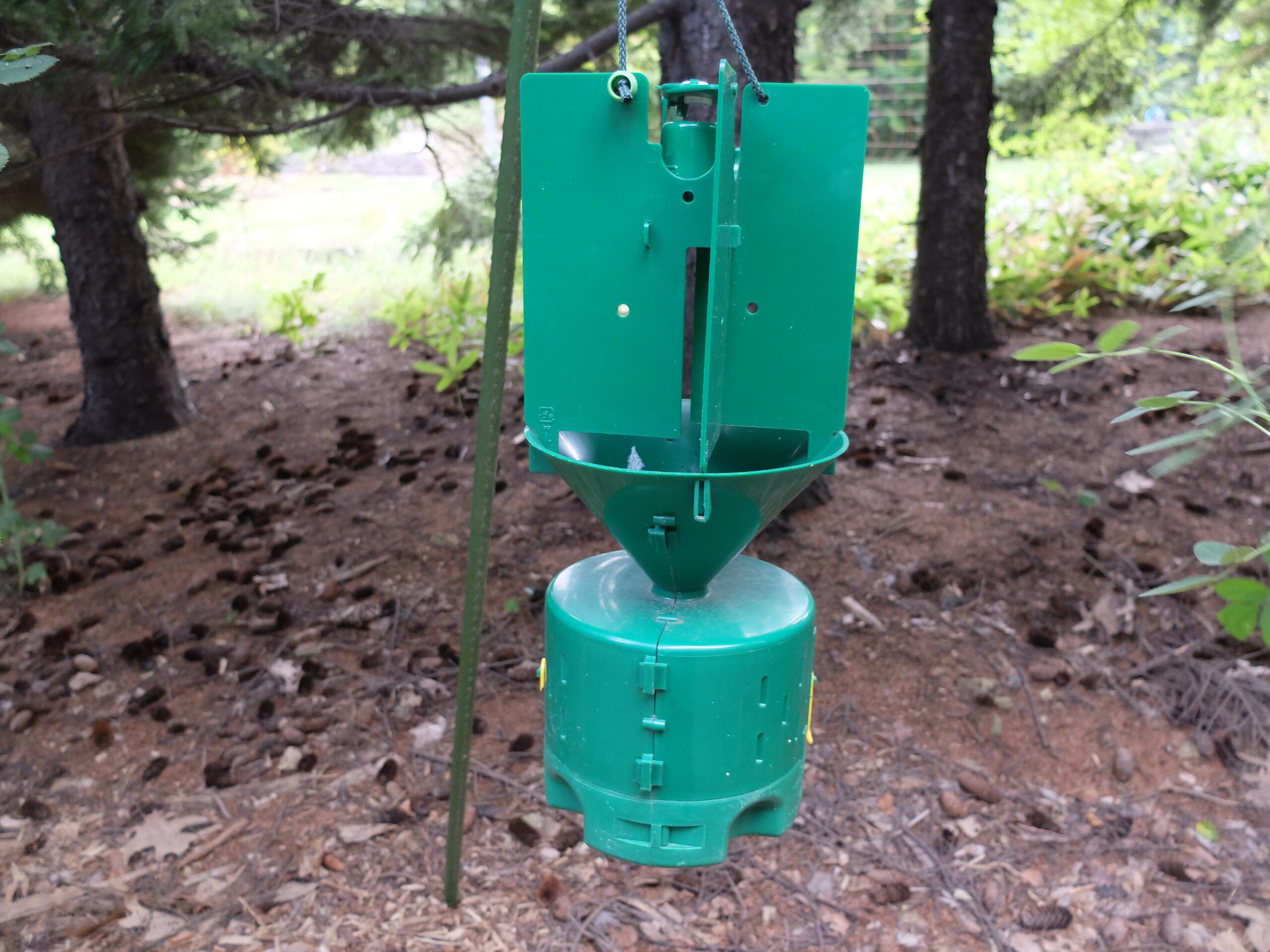 バラの散策路「ローズウォーク」は基本的に無農薬で管理をしており、バラの害虫となるコガネムシの成虫の雄を捕獲する「フェロモントラップ」を導入しています。
