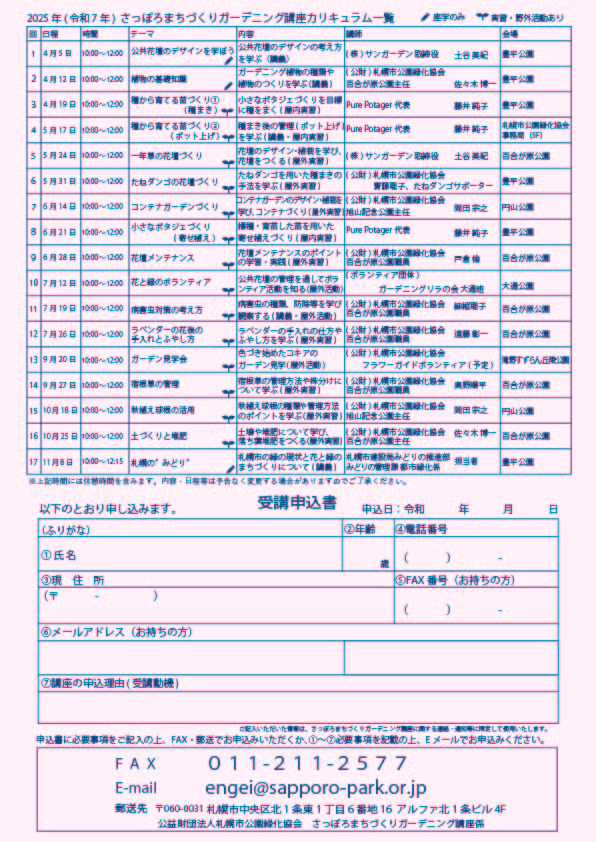 【申込終了】2025年(令和7年)さっぽろまちづくりガーデニング講座 受講者を募集します!※締め切りました。
