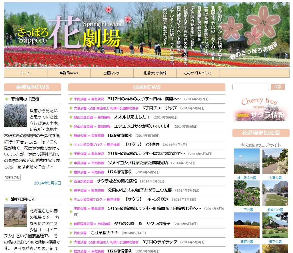 札幌市内の公園のお花情報は、「さっぽろ花劇場」のホームページをご覧いただくとまとめてチェックできて便利です♪お出かけの際にはどうぞご活用ください。