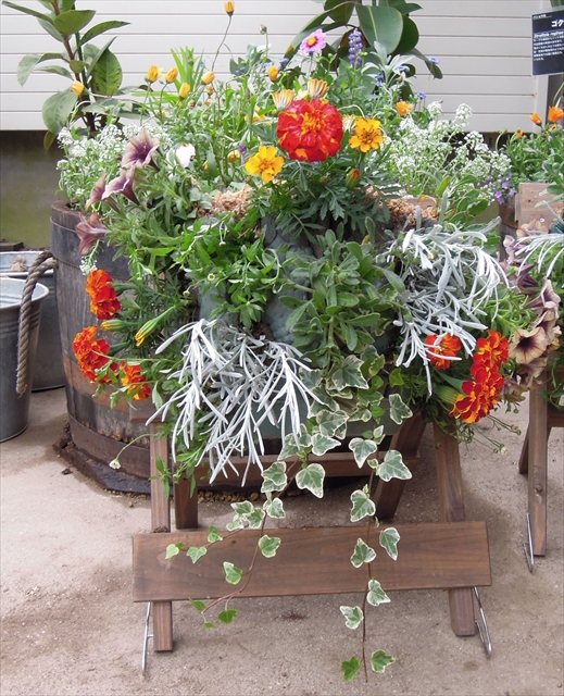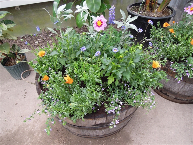 暴れるタイプ、立つタイプなどをうまく組み合わせて立体的に植えます。