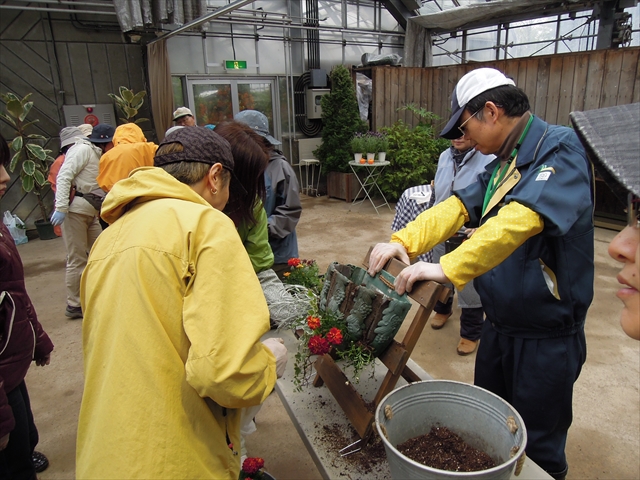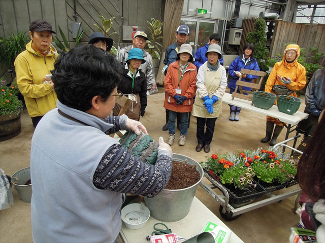 ハンギングバスケットマスターでありコテージガーデン百合が原公園店・店長の宮崎さんに、コンテナ花壇とハンギングバスケットの作り方を教えていただきました。