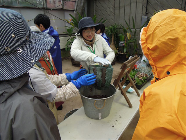 2つ目も完成!こちらのコンテナは、「世界の庭園」前に置きます。この日は雨だったので、数日温室内で養生してから外へ出すことにしました。温室前2基、世界の庭園前2基で、計4基つくりました。