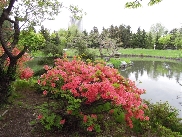次は、ツツジの中でも春一番に咲くエゾムラサキツツジ。かぐわしいライラックのそばにあります。