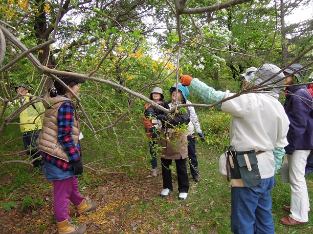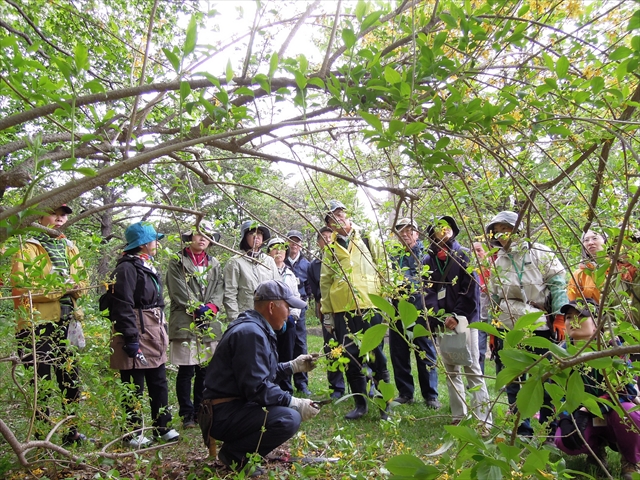 例年は平岡樹芸センターで剪定の実習を行うのですが、現在樹芸センターの庭木相談所が建て替え中のため、今年は中島公園で実施しました。