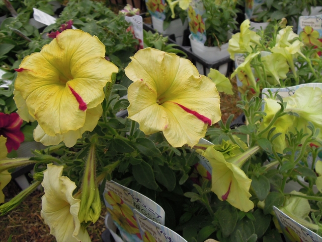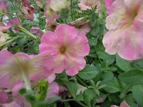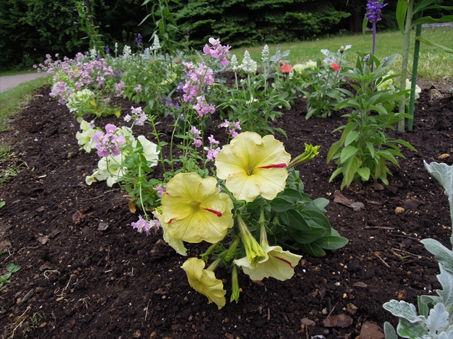 隙間に、かわいらしい色のペチュニアを植えました。場所によってペチュニアの色や模様が違うので、いろいろな雰囲気を楽しめますね。お気に入りのペチュニアはみつかりましたか?^o^