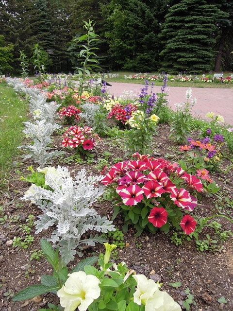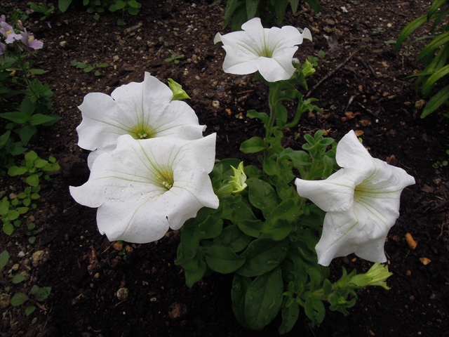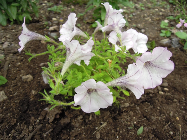 この前の長雨で、ペチュニアがだいぶダメージを受けてしまいました。かなり盛り返したのですが、勢いが弱めのペチュニアのところにサフィニア白と小花のペチュニアを補植しました。すこしにぎやかになったかな。