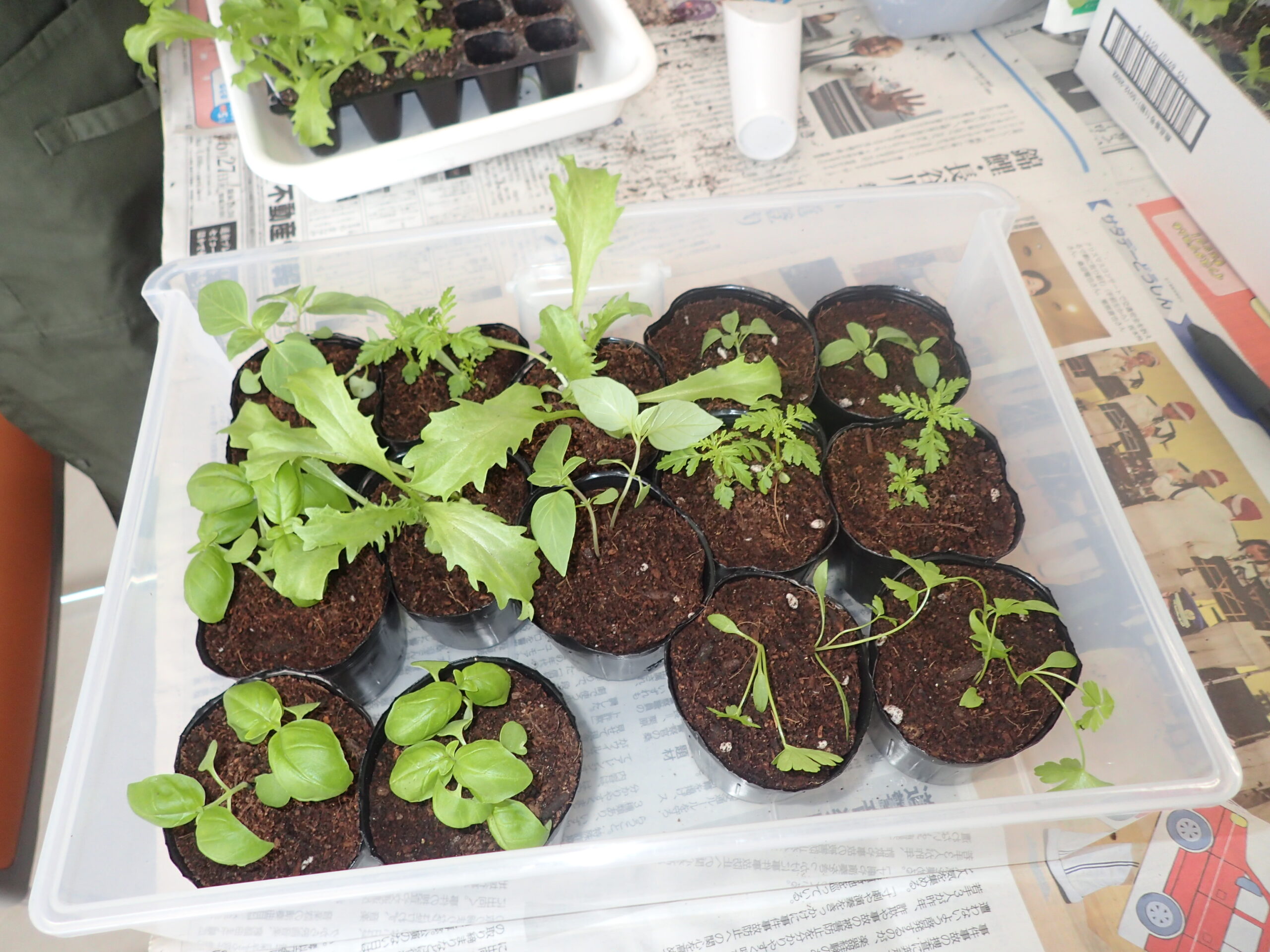 受講者のみなさんが自宅から持ち寄った苗は、お一人お一人違っていて「同じ日に種まきしたのにね」「どんな場所に置いていたの」という声が聞こえてきます。