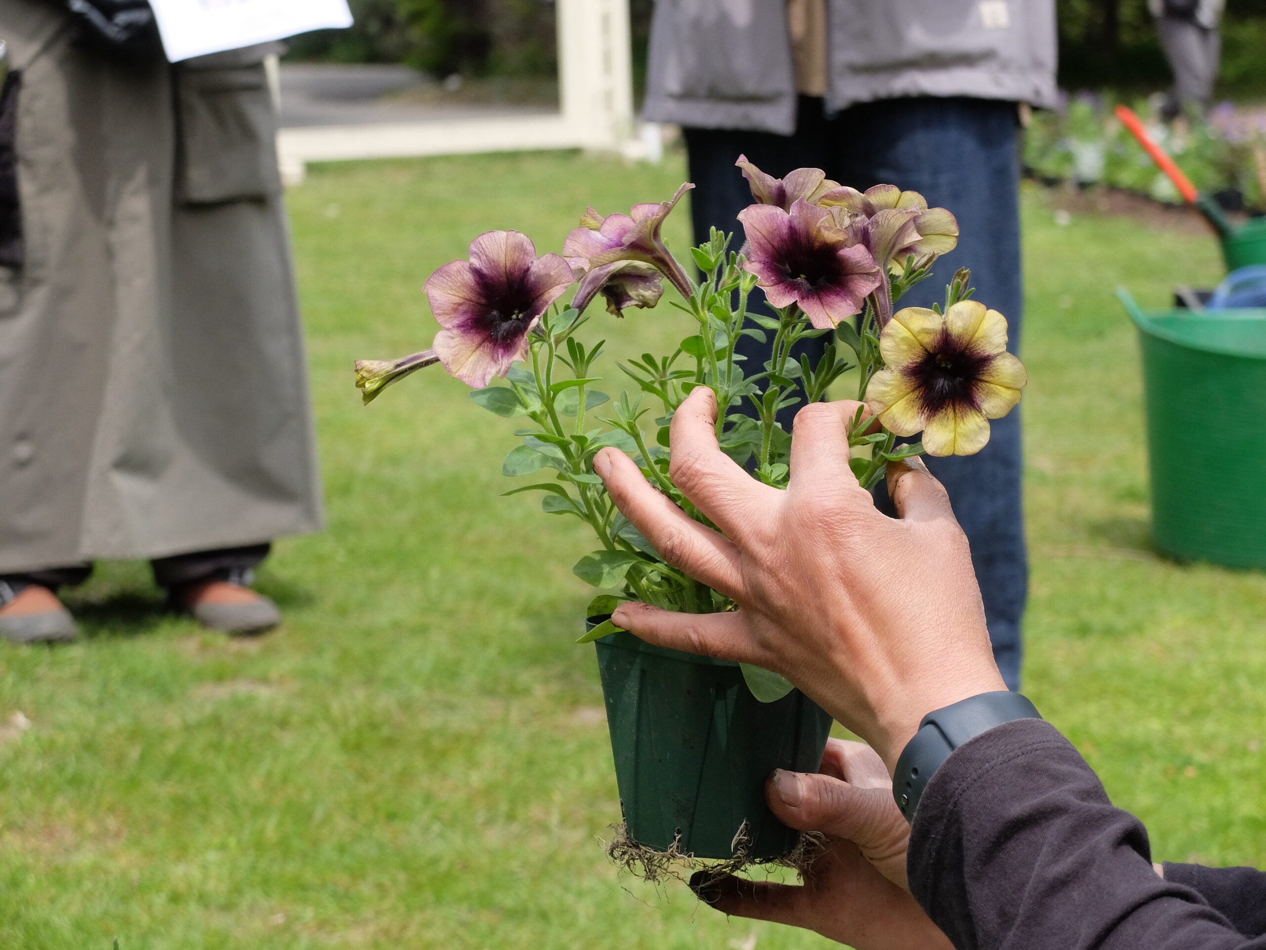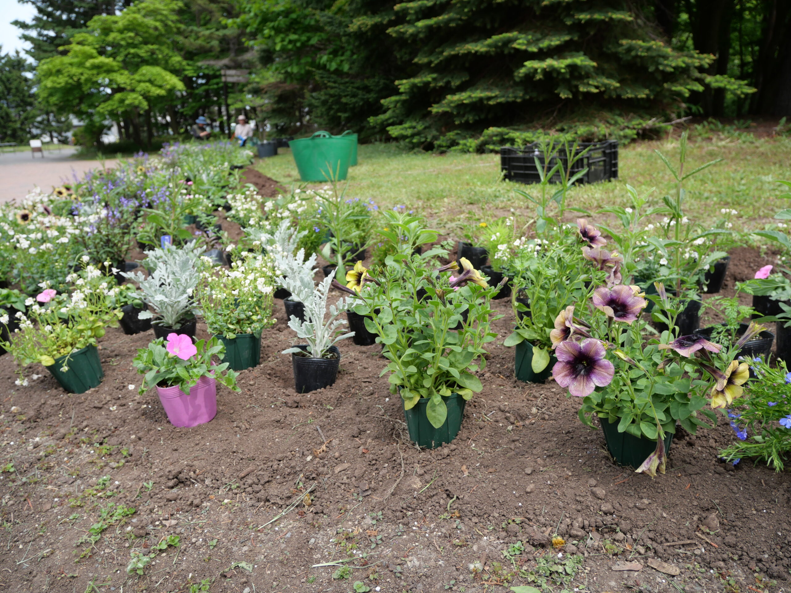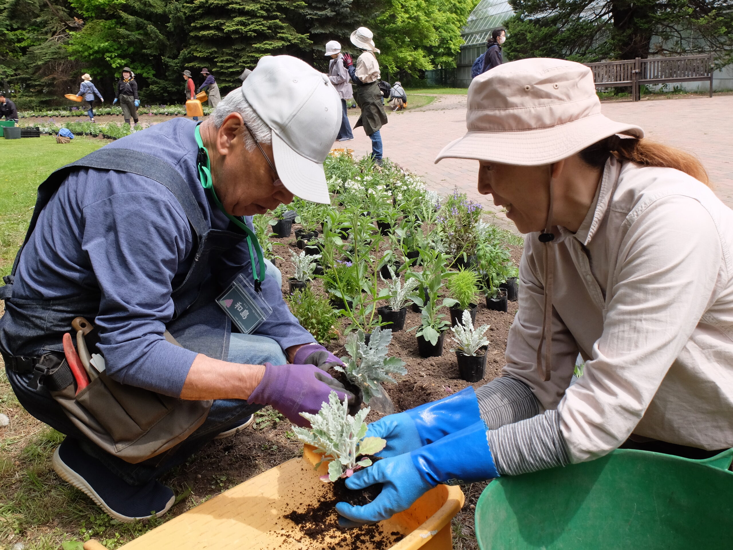 お二人には朝早くからお越しいただき、900株以上の花苗を花壇に並べてご準備いただきました。