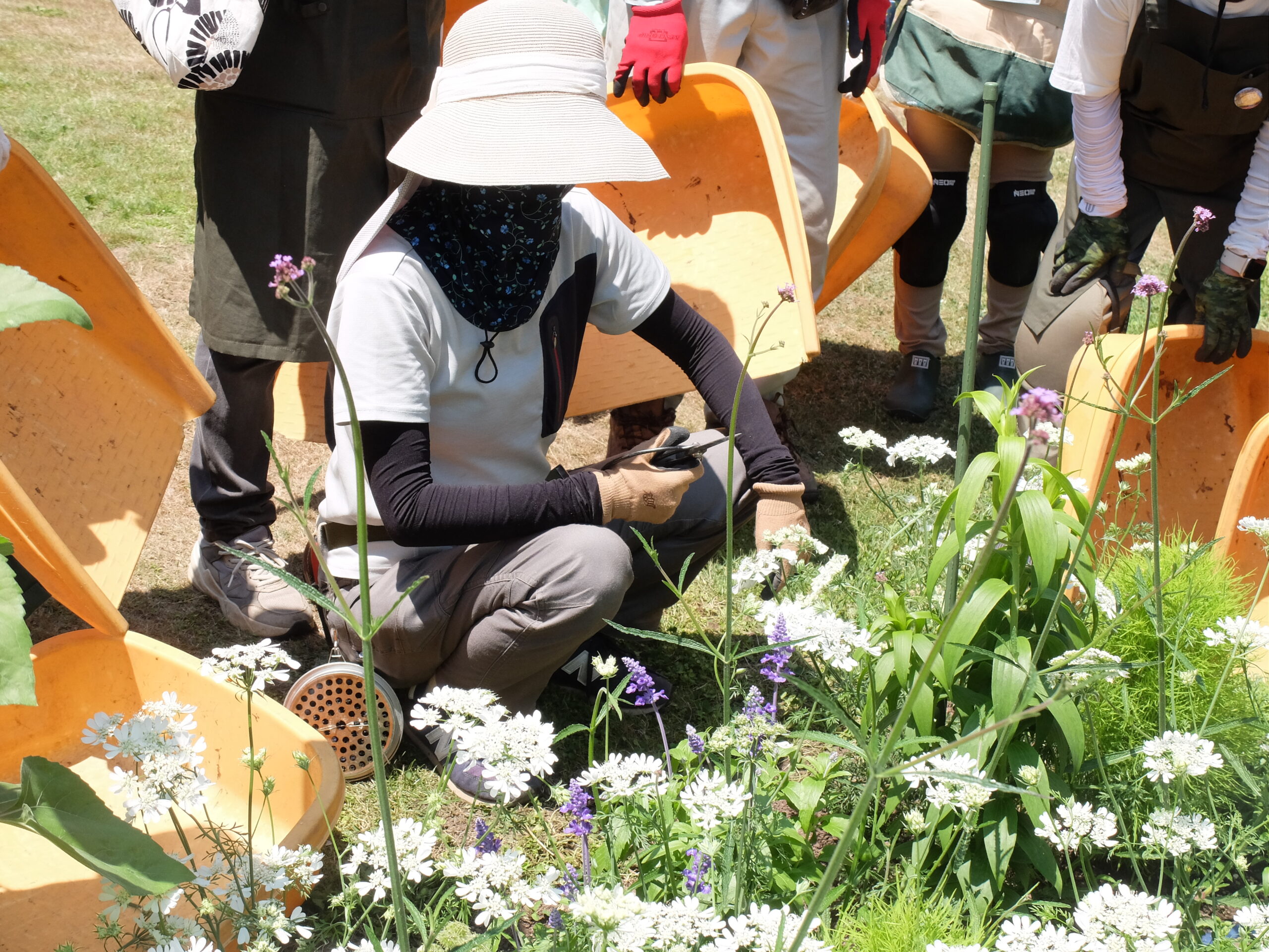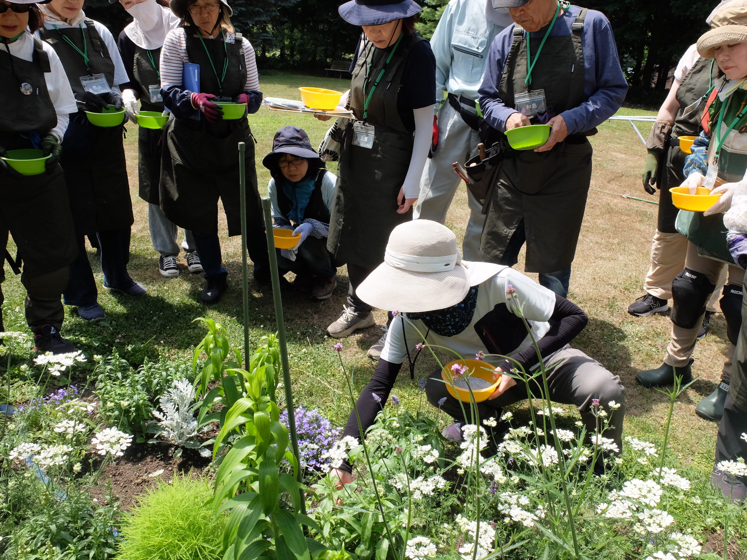 2025年6月28日土曜日、2025年さっぽろまちづくりガーデニング講座の第9回目「花壇メンテナンス」の実習を百合が原公園で行いました。講師は当協会職員で百合が原公園勤務の戸倉倫が担当しました。