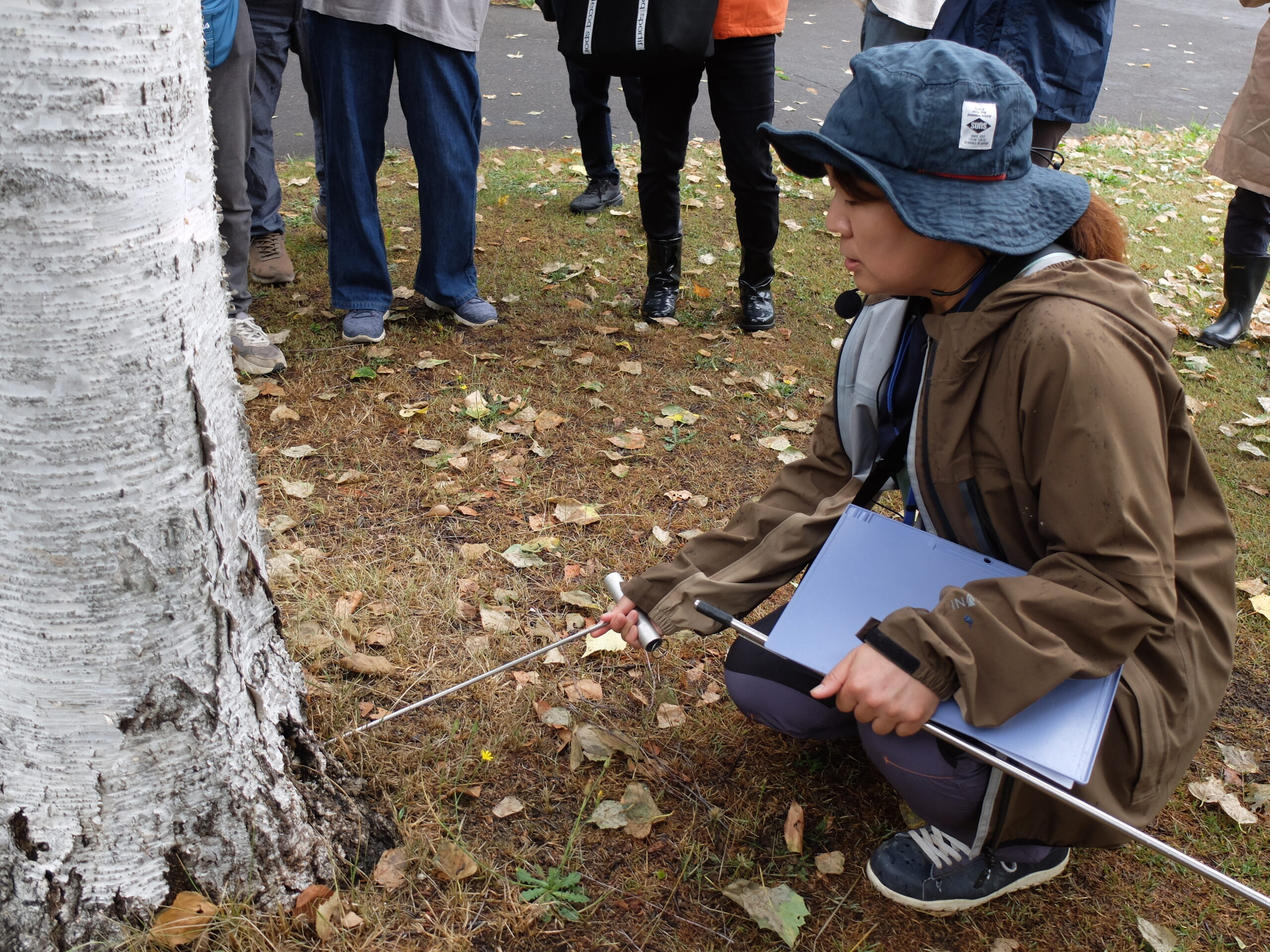 また、樹木医でもある講師が専用の道具を使用して、シラカバの樹木診断を実演してくださいました。