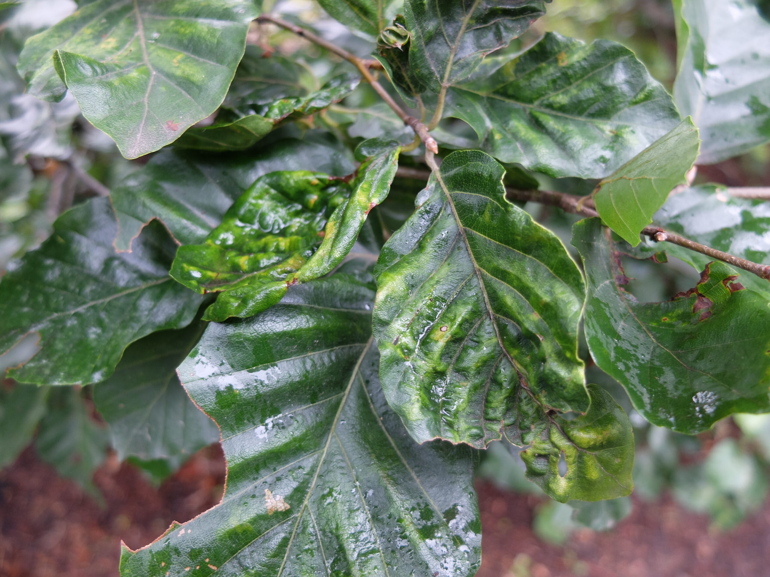ほかにも園内では、モザイク症状が出ているセイヨウブナの様子やうどんこ病が発生しているかぼちゃの様子なども観察しました。