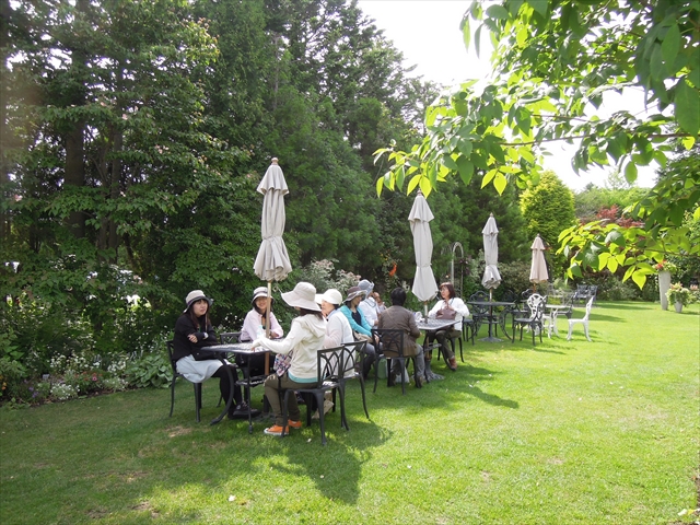 午前中に恵庭市内のオープンガーデンをめぐり、道の駅でお昼休憩をしたあとはふたたびバスに乗り、サンガーデンへ向かいました。