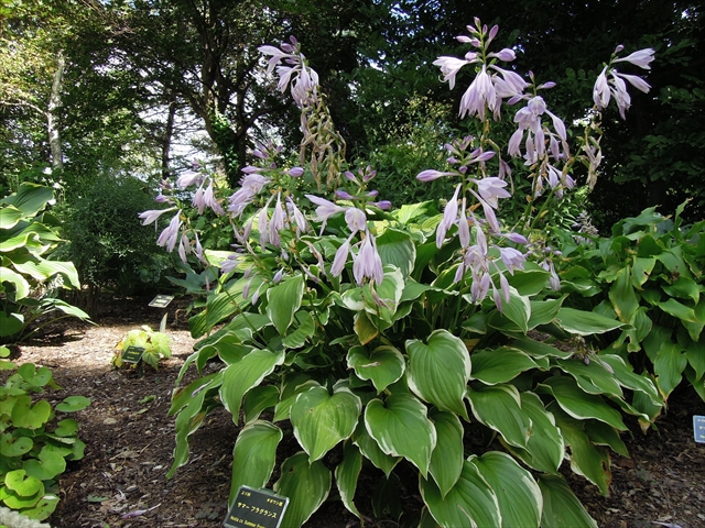 世界の庭園に入ってすぐ右側にある、あずまや前の「ギボウシ」をまず株分けしました。下の画像は品種が違うギボウシですが、園内ではこのようなピンクのかわいらしい花が咲いていました。