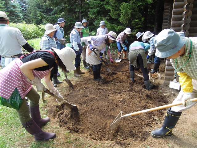 ギボウシが植えられていたところにはピートモスを入れ、剣先スコップで掘り返して土壌改良をします。太い根に苦戦しましたね(>_<)