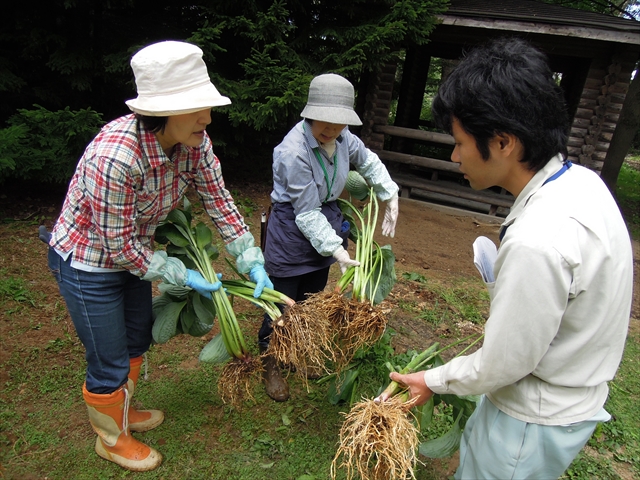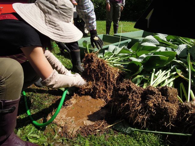 みなさん、せっせとシゴトが早いです! あっという間に全ての堀り上げが完了しました。きれいに掘り上げた株の根は、ホースで水洗いしてから水の入れたトレイにつけておきます。