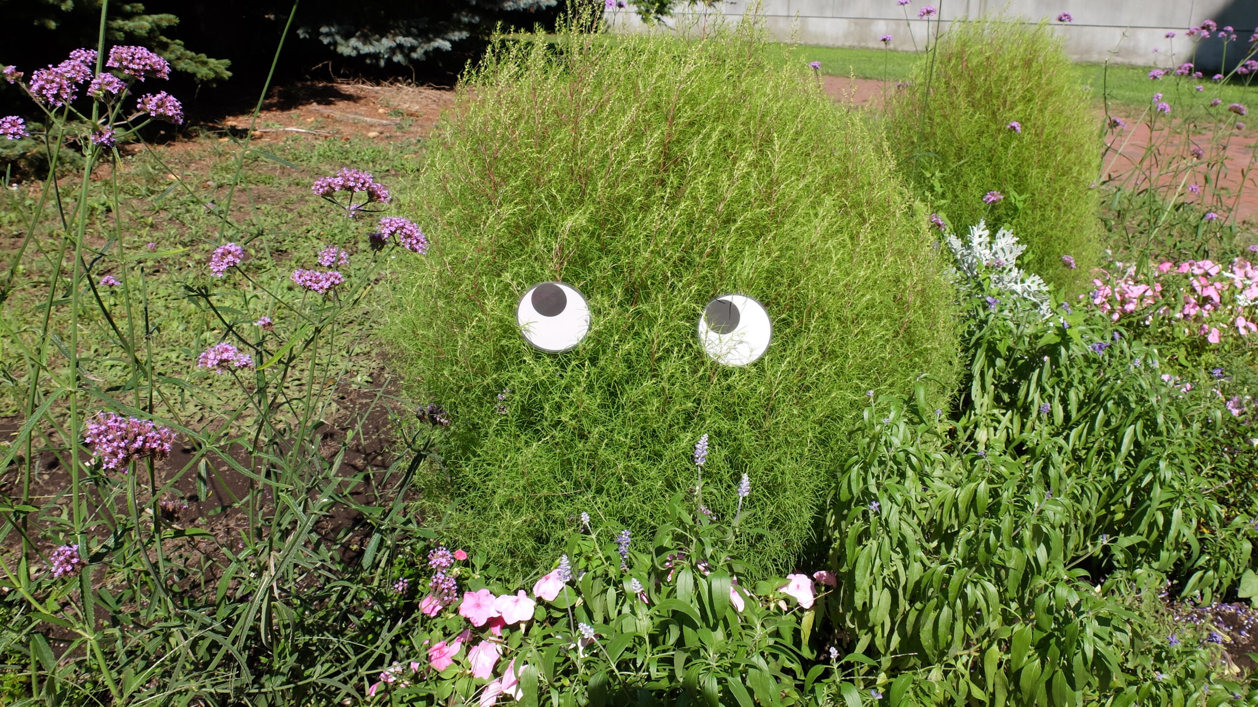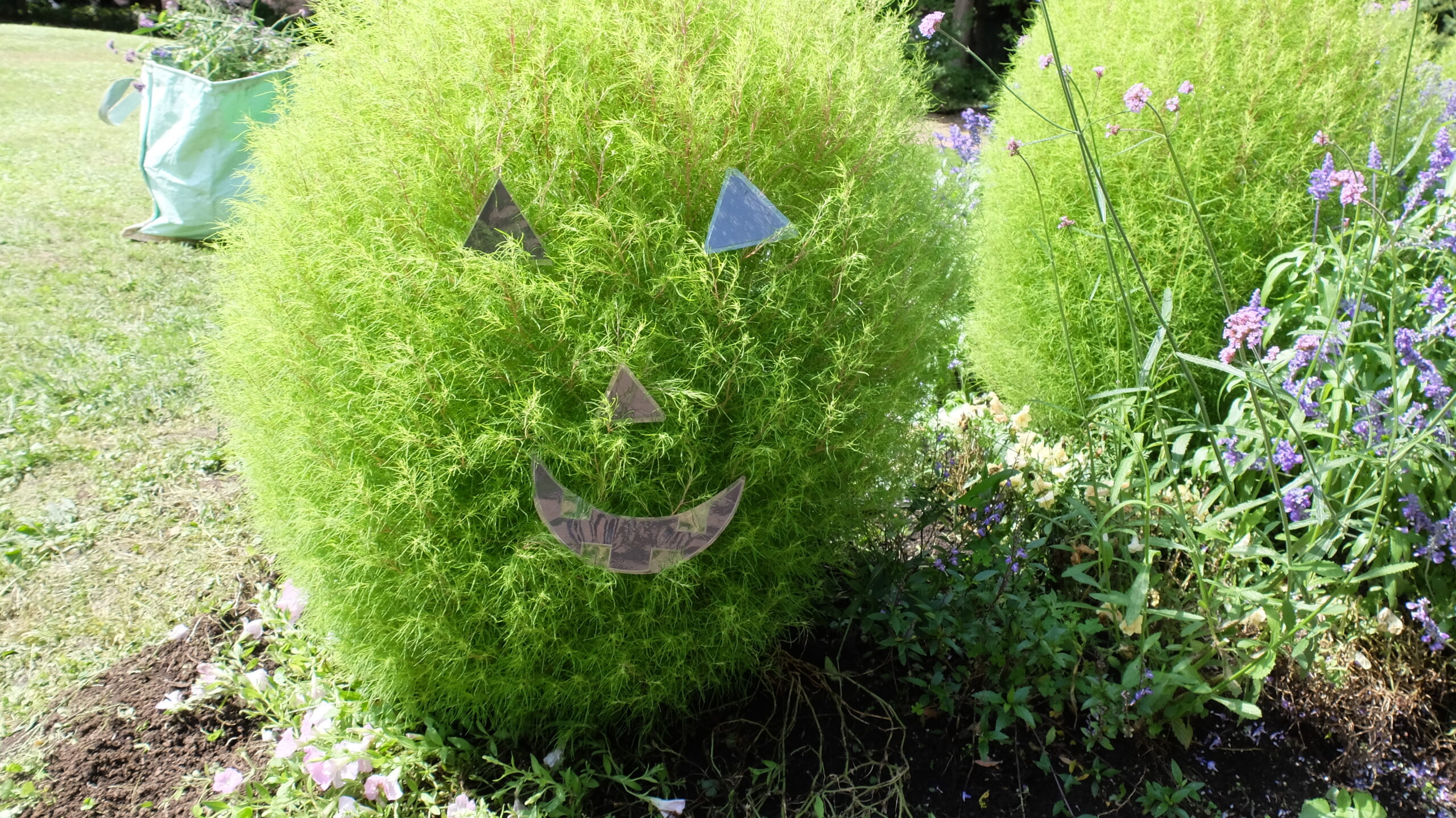 1人1つのコキアを装飾し、花壇が楽しいムードに変わりました。