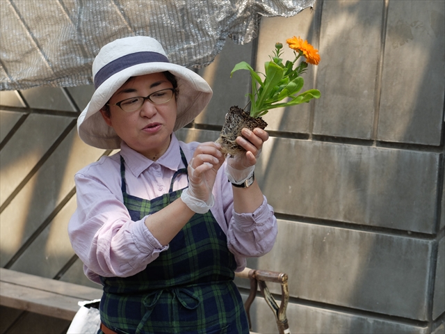 第2回のテーマは「コンテナ花壇」、講師は、百合が原公園ガーデンショップ店長であり、 日本ハンギングバスケット協会(JHBS)のハンギングバスケットマスターでもある宮崎恵里子先生です。