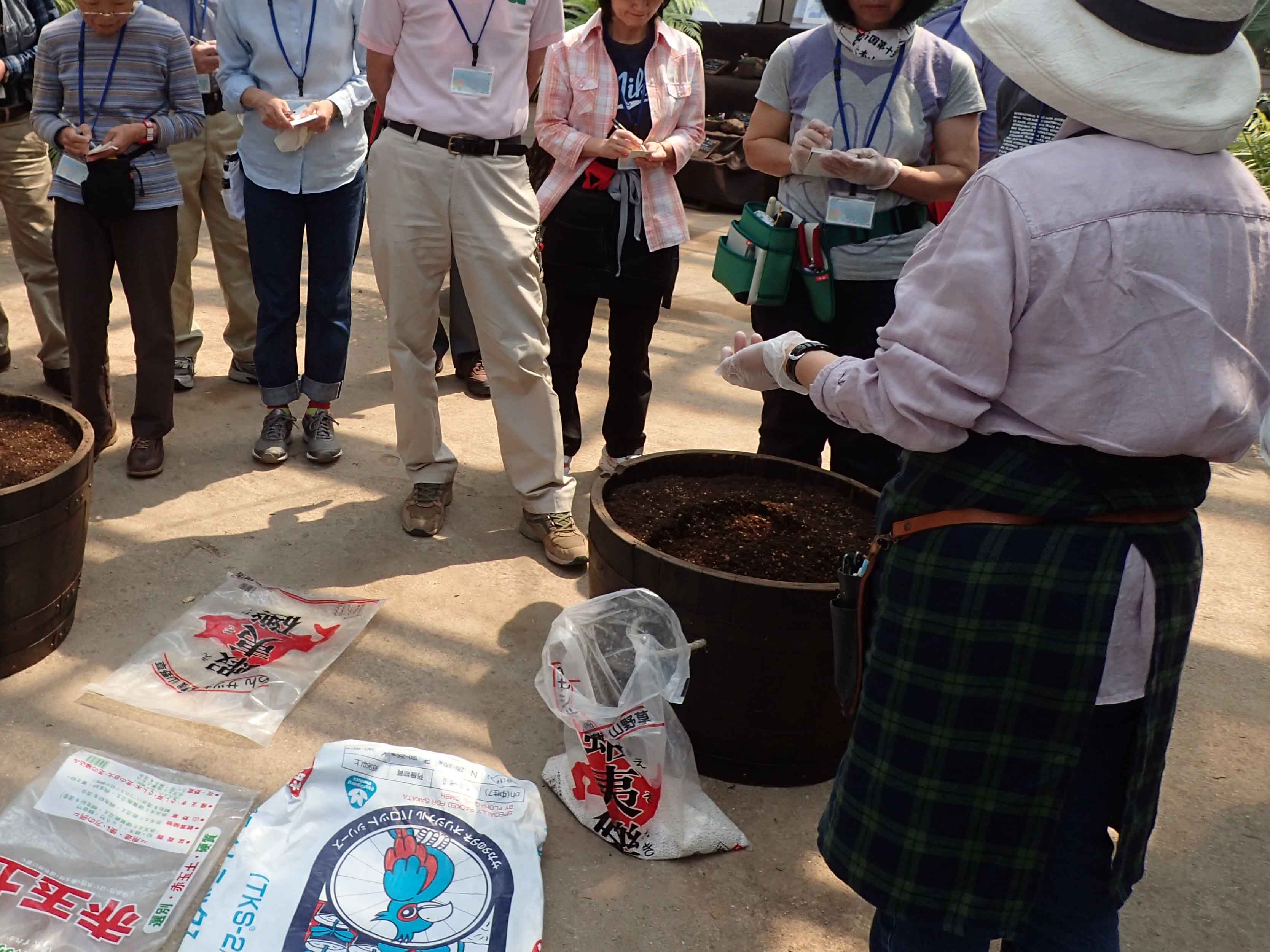 どんな土をどんな組み合わせでどのくらい入れるのか。受講者の皆さんはメモを取りながら真剣に聞いています。