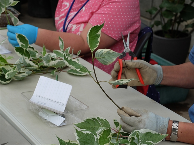 今回は百合が原公園勤務の佐々木博一職員が一日講師として、「挿し木」をテーマに実習をすすめました。