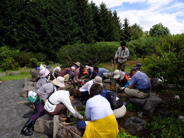 午後からはロックガーデンに植わっているエーデルワイスの株分けと移植を行いました。
