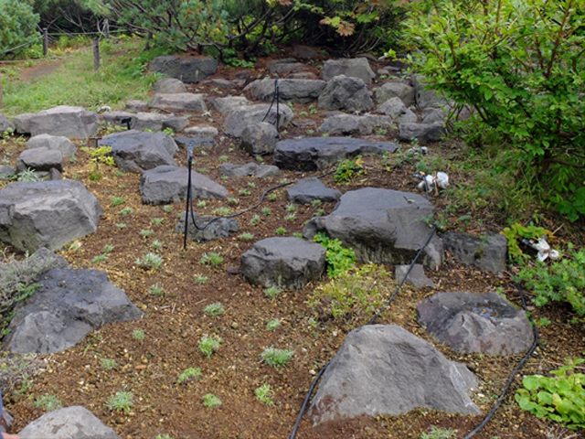 分けた株を奥の方まで移植しました。数年後、このロックガーデンの斜面がエーデルワイスでいっぱいになるのでしょうか。