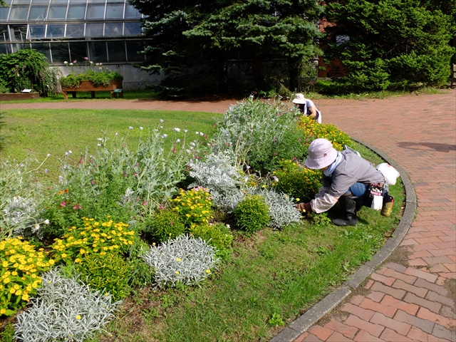 さて、終了後の片付けや、以前植え込んだ花壇の手入れも実習の一環です。