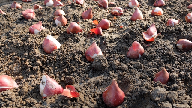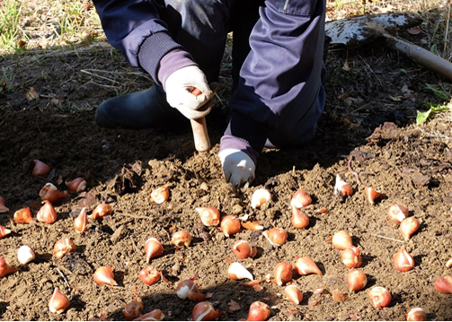 植える準備ができたら実際に球根を植え込みます。