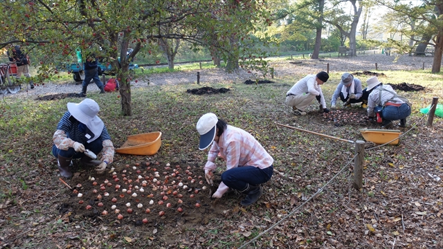 実習が終わる頃には5000球以上の球根が植えられました。