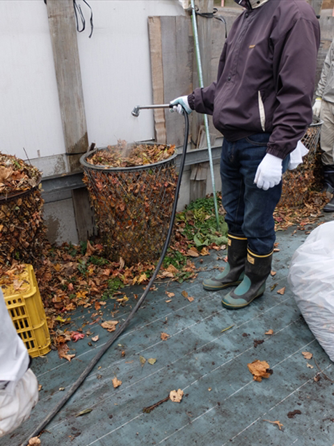 堆肥を掘り返すと、発酵した熱で中から湯気が出てきます。いい具合に発酵している堆肥はいいにおいがしました。