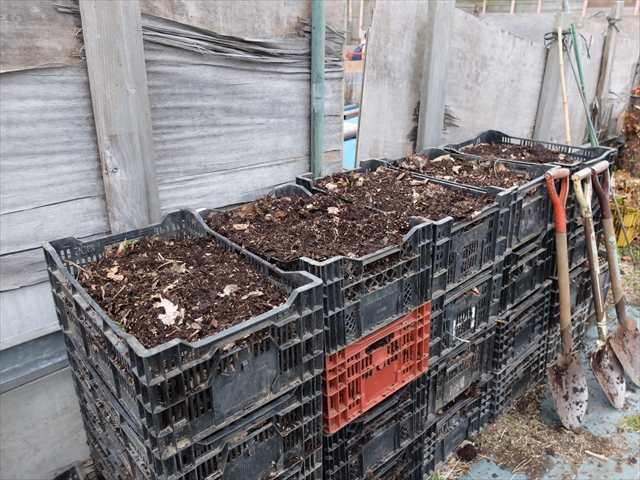 今回仕込んだ落ち葉堆肥です。来年はどうなっているでしょうか。