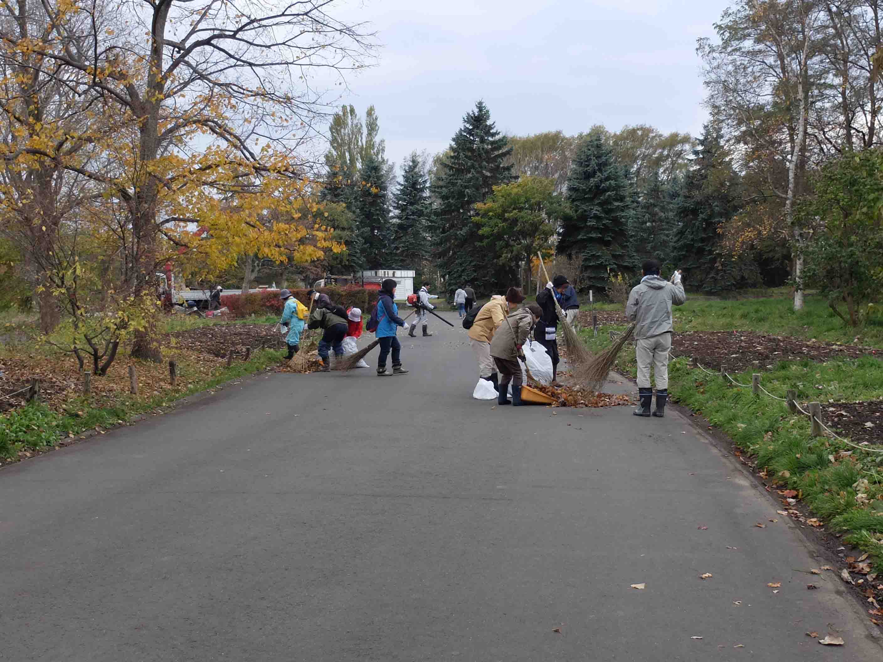 堆肥の材料となる園内各所から落ち葉を拾い集めます。