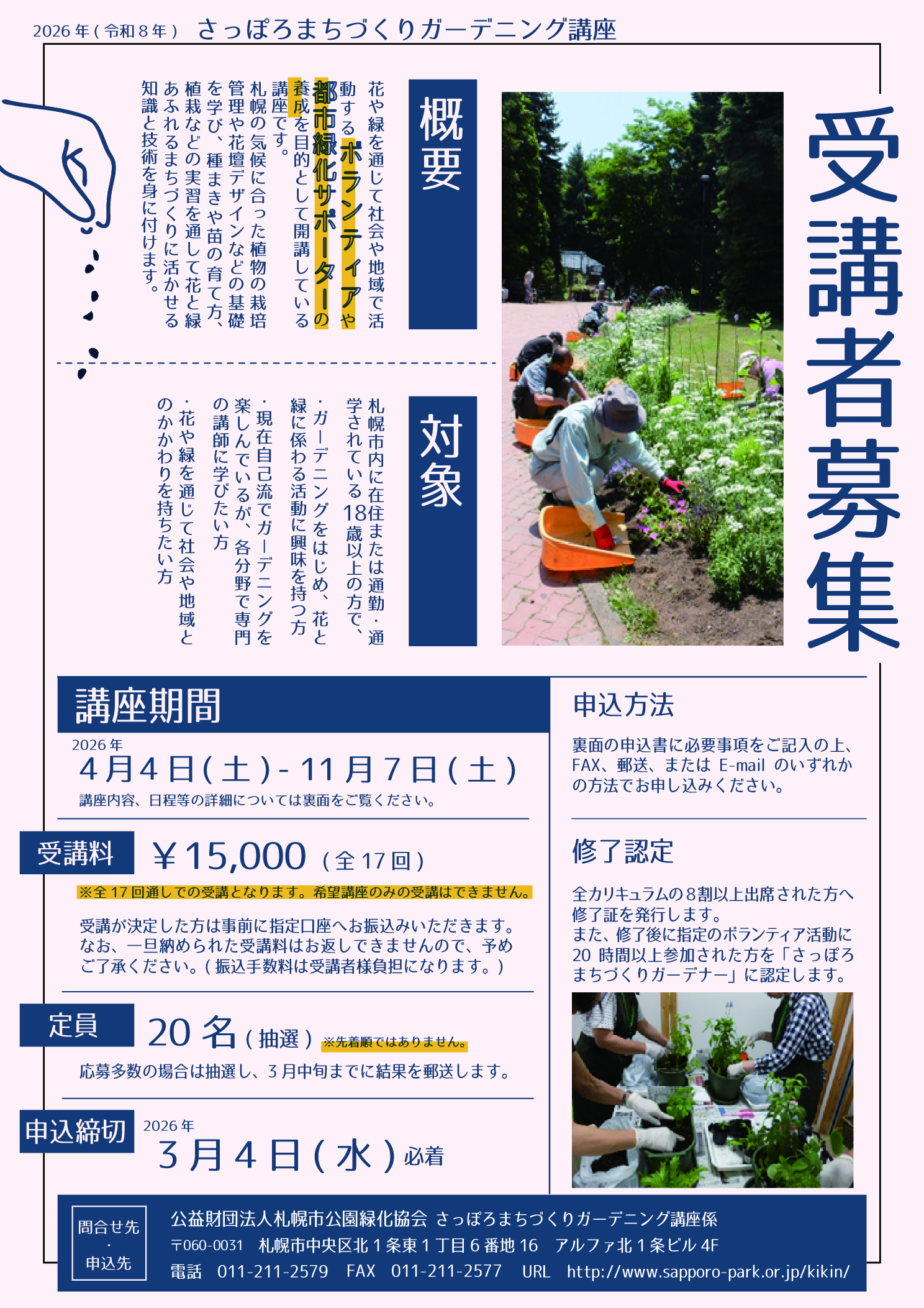 【申込終了】2026年(令和8年)さっぽろまちづくりガーデニング講座 受講者を募集します!※締め切りました。
