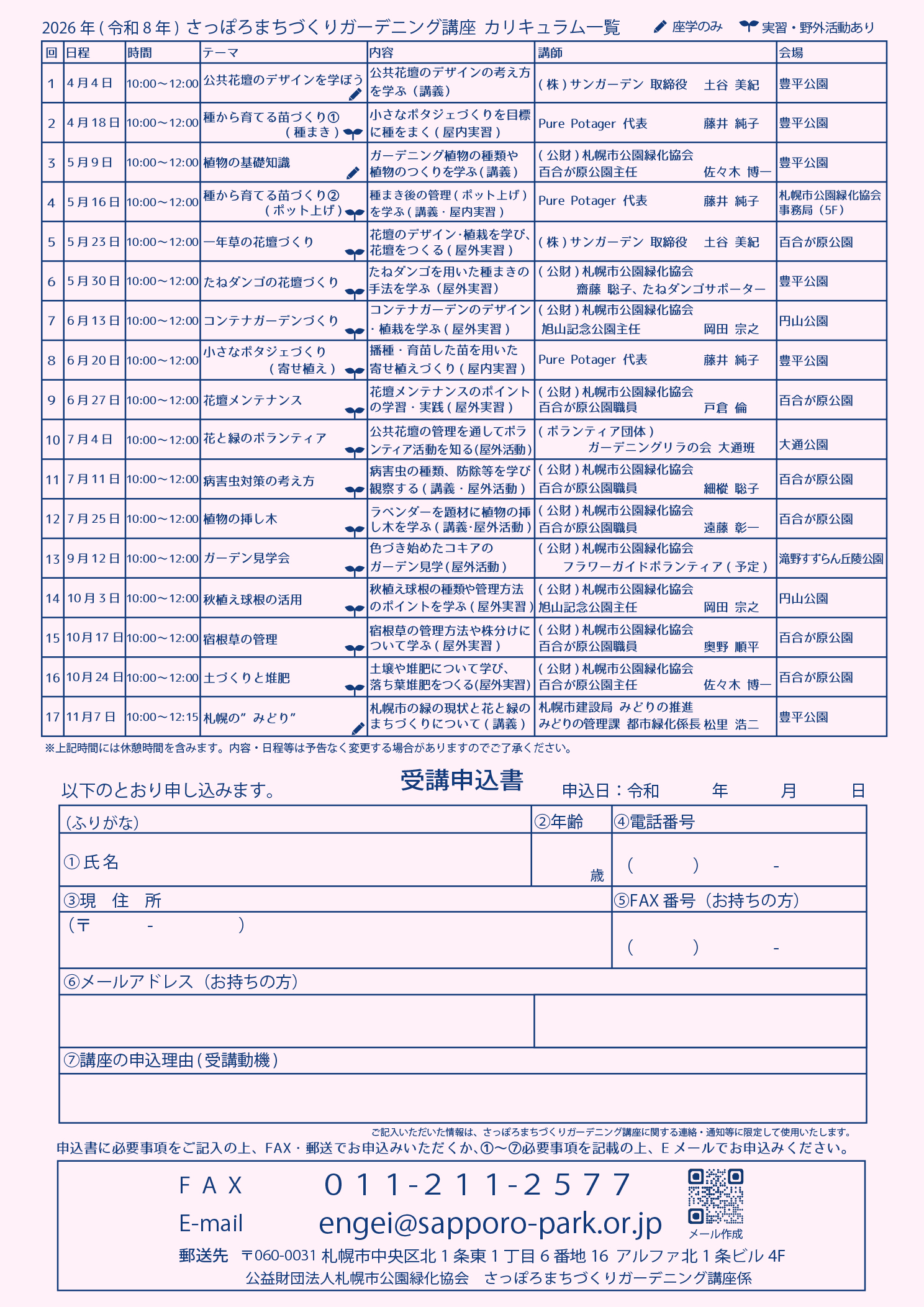 花や緑を通じて地域や社会で活動するボランティア、都市緑化サポーターの養成を目的として「さっぽろまちづくりガーデニング講座」を開講しています。