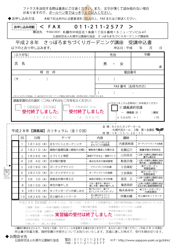 11月27日(金)、平成28年さっぽろまちづくりガーデニング講座の受講者募集を締め切りました。