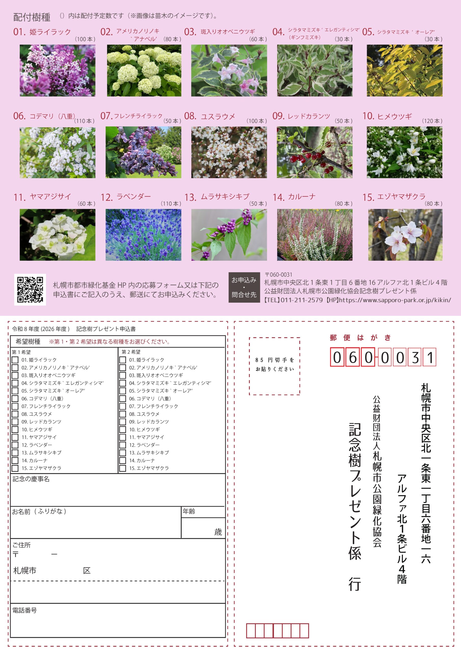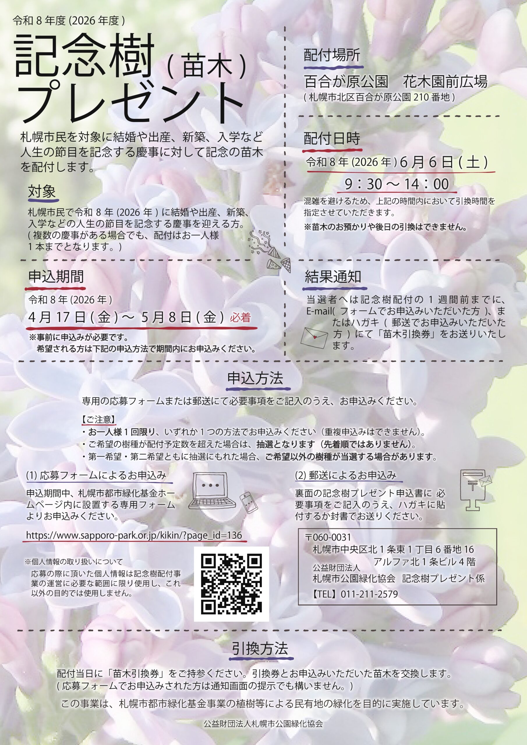 札幌市民を対象に結婚や出産、新築などの人生の節目を記念する慶事に対して記念樹(苗木)の配付を令和8年度(2026年度)も実施します!
