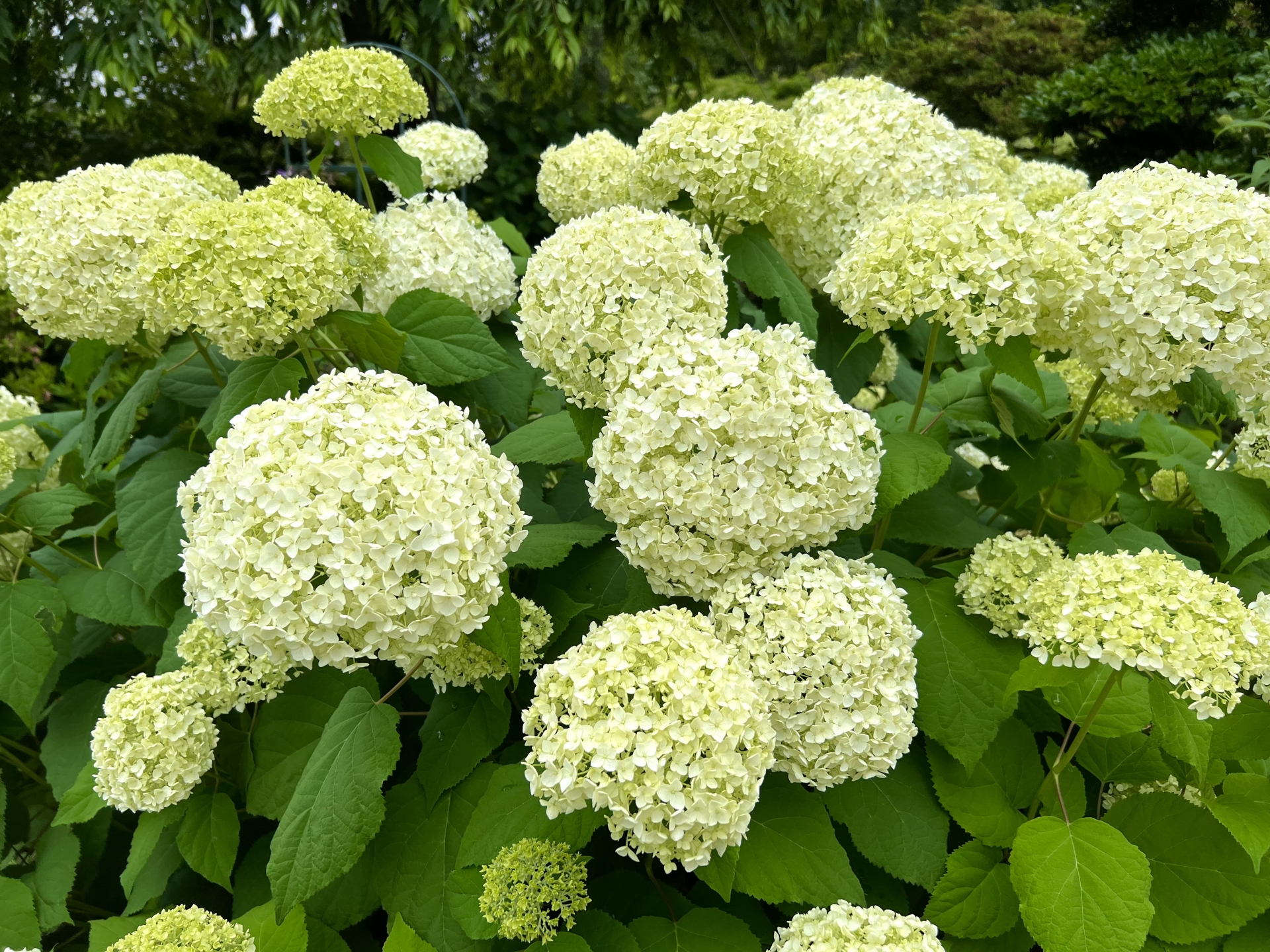 手毬状の花を咲かせるアジサイです。咲き始めは薄いグリーンですが、花が咲き進むと白く丸い形状の花へと変化します。ドライフラワーにしてリース等の材料としても楽しめます。
