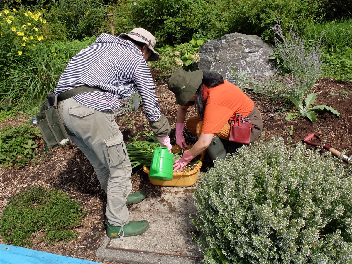 植物を殖やす方法のひとつである株分けのメリットとデメリット、掘り上げる位置など株分けの具体的な方法、株分けに適した時期などの説明を受けてから作業を始めました。