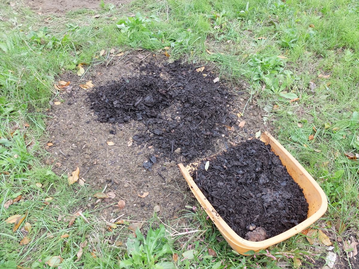 今回つかった堆肥は、公園内で刈った草や、花壇の花がら、落ち葉などを利用して百合が原公園でつくられています。