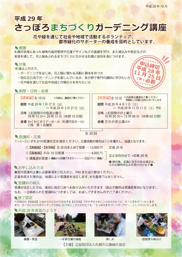 平成29年さっぽろまちづくりガーデニング講座募集案内(PDF 465KB)