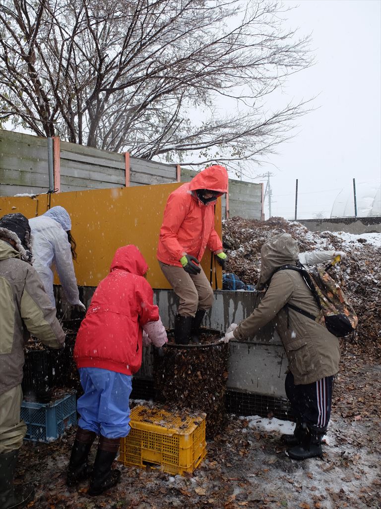 堆肥を掘り起こすと湯気が立っているのがわかるでしょうか。この雪の中でもしっかりあったかいのです。