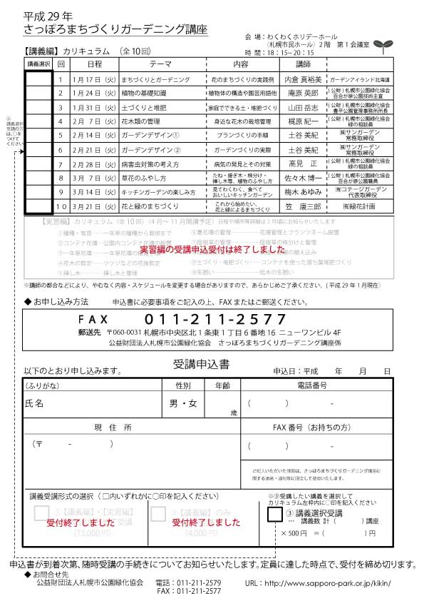 申込書が到着次第、随時受講の手続きについてお知らせいたします。定員に達した時点で、受付を締め切ります。