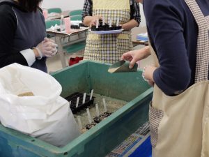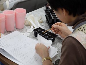セルトレイやポットに入れる際の量や工夫等ポイントを教えて頂きながら