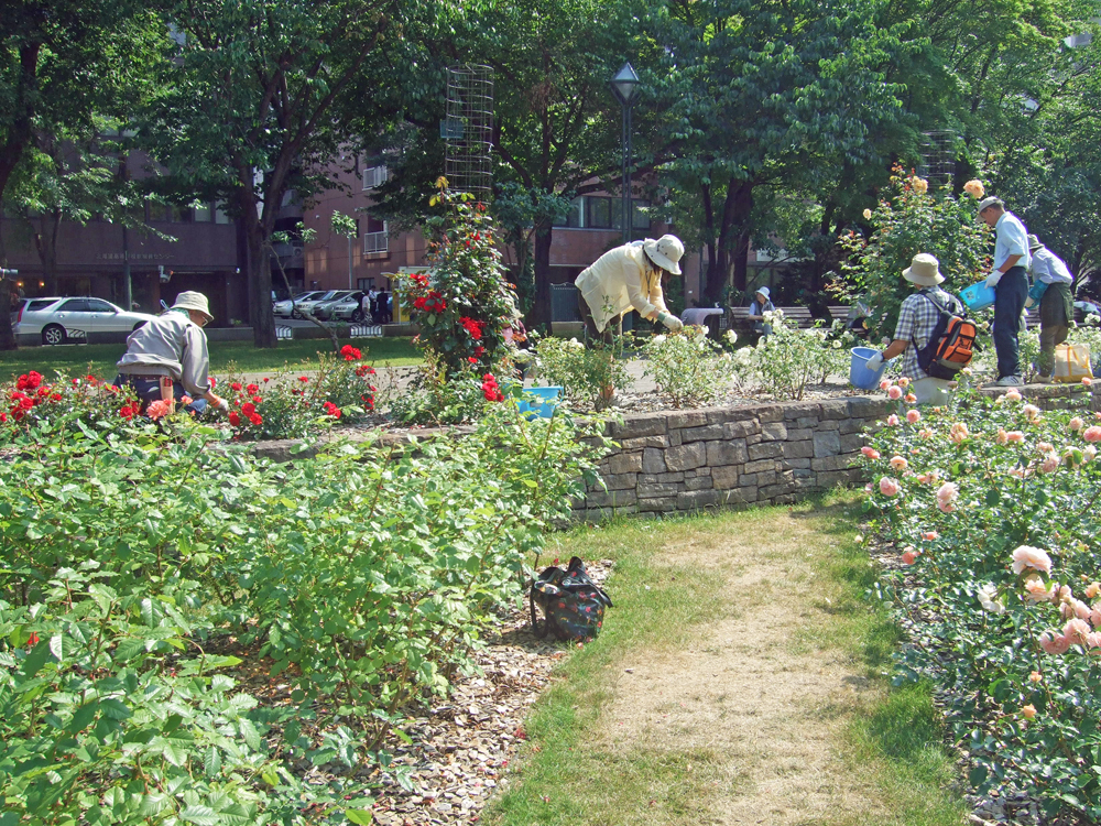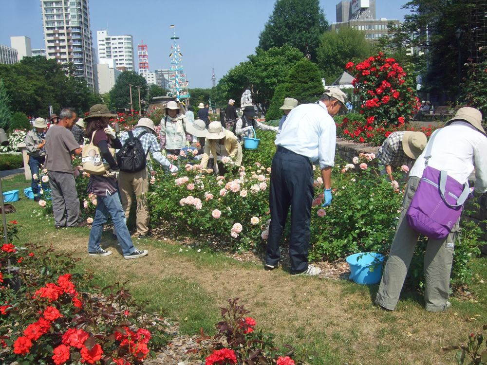 大通公園のバラ園は、ボランティアさんが管理をしてくれています。