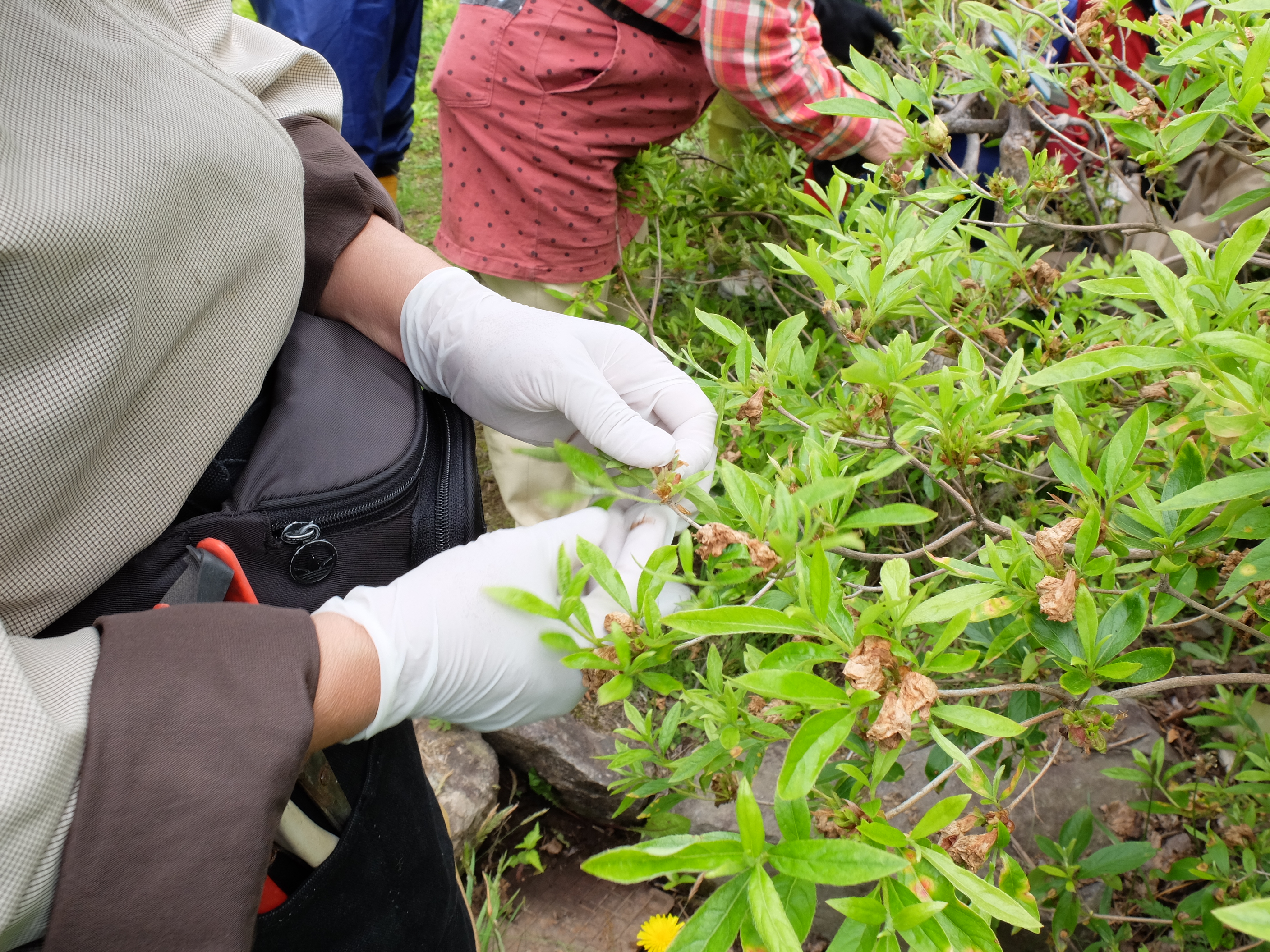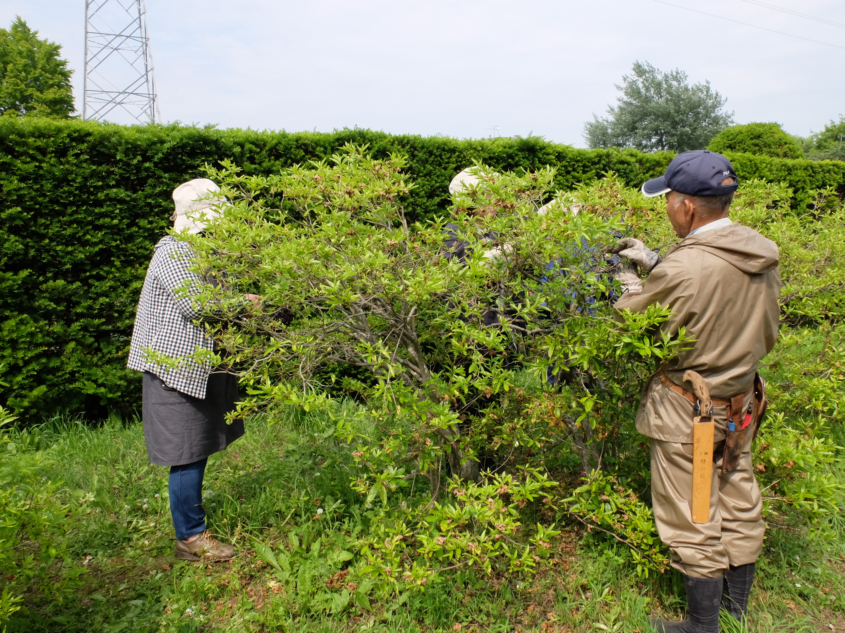 剪定には一人一人の感性があらわれる為、一人一本ずつヨドガワツツジの剪定を行いました。