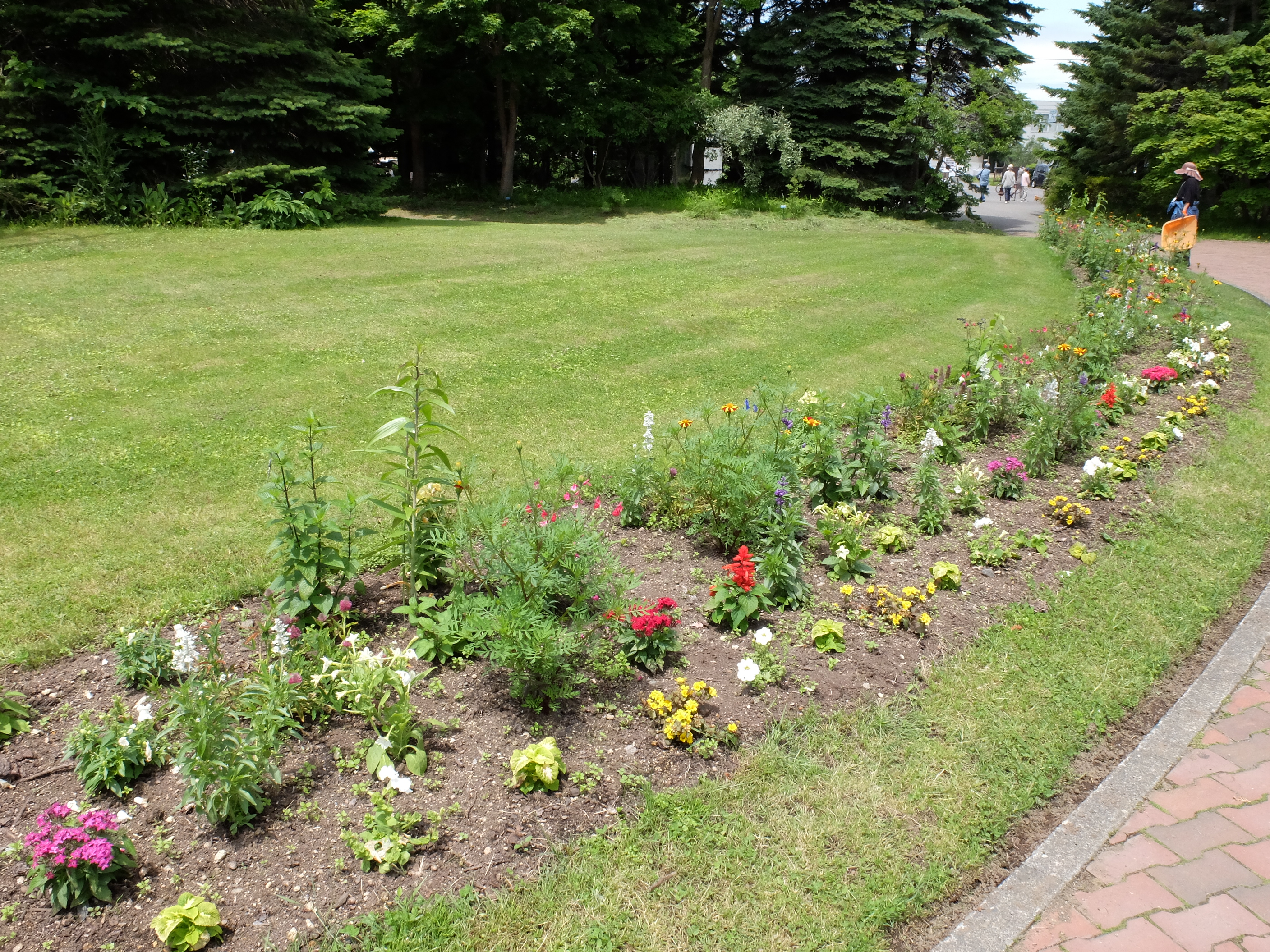 一年草花壇は花がら摘みや雑草取りを行いました。