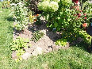 実際に今回作業した花壇に挿して行きました。