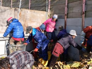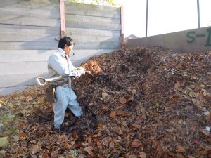 昨年作った落ち葉堆肥はくずかごから出され、一か所に集められ、熟成が進められていました。