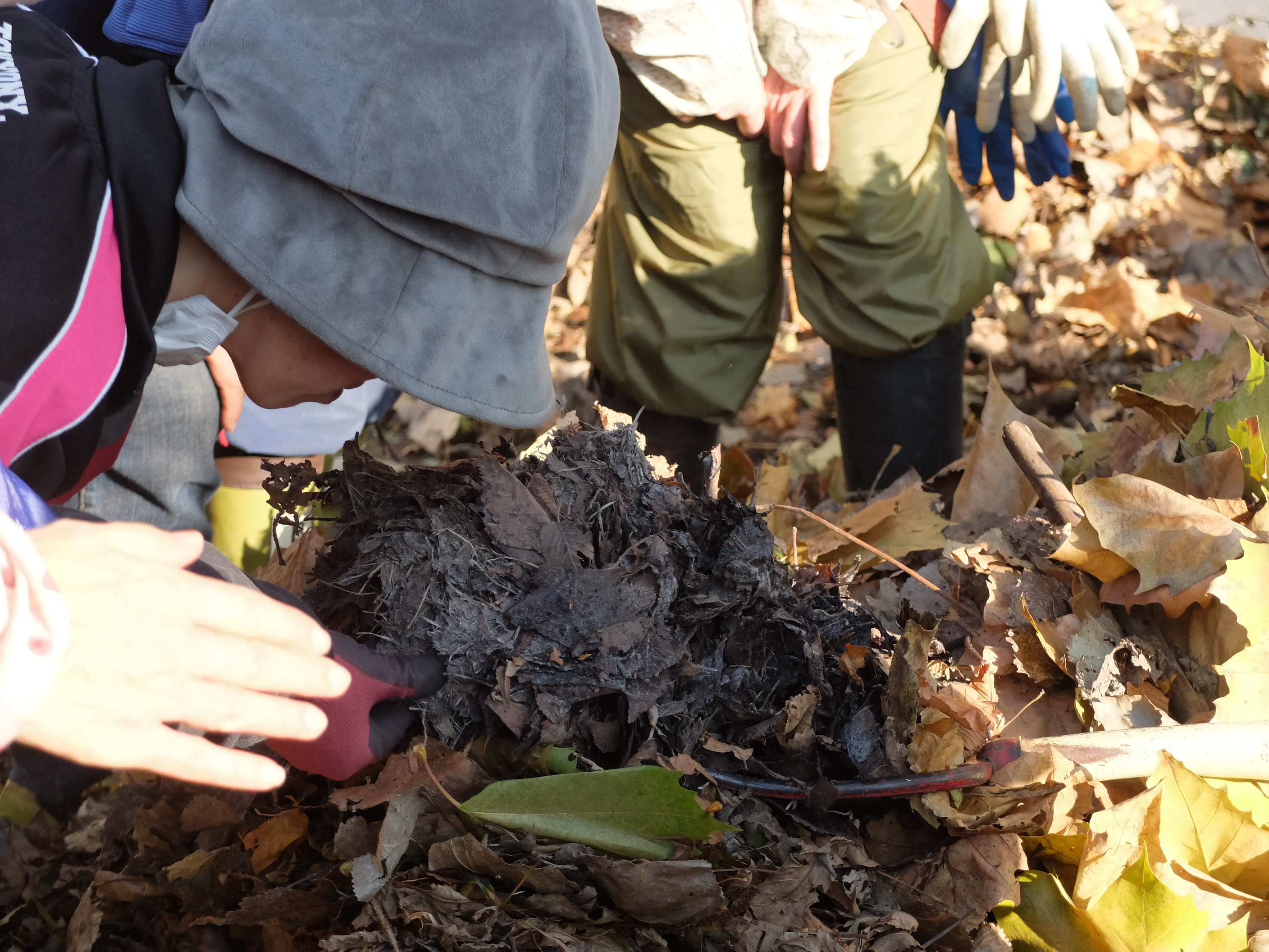 掘り起こした落ち葉はほんのり甘いようなサウナのような香りがしていました。